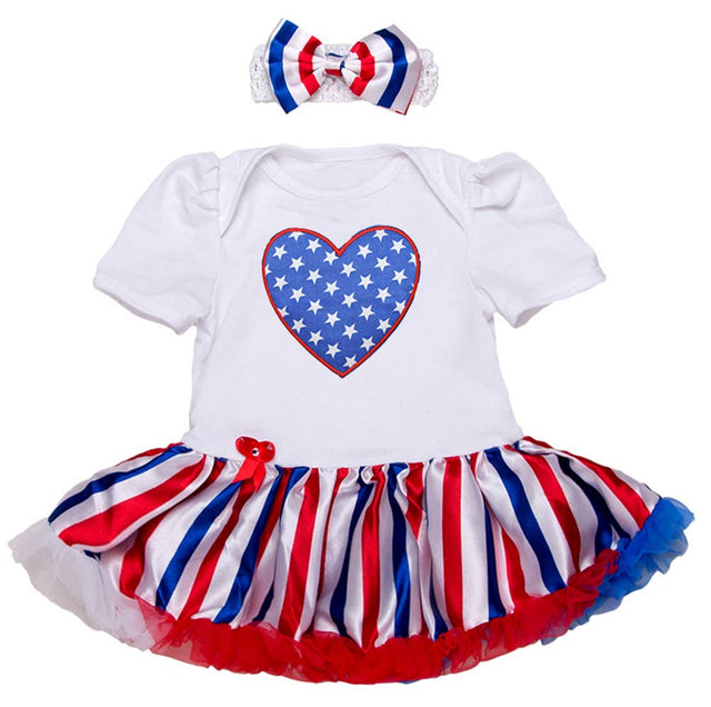 American Flag Heart Baby Romper Dress and Headband