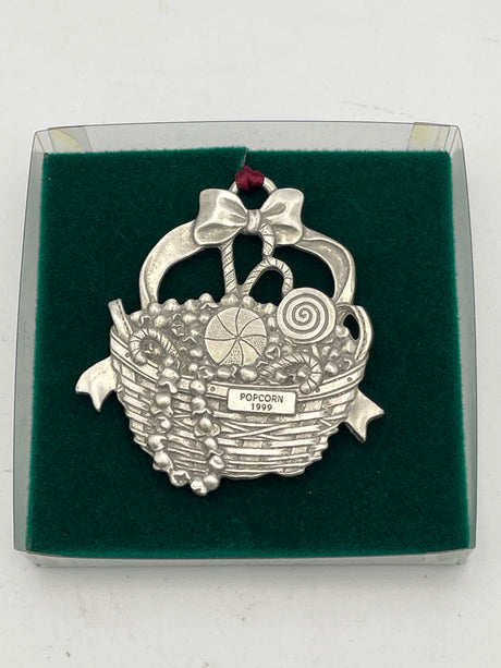 Longaberger Pewter Basket Christmas Ornaments 1999 Popcorn
