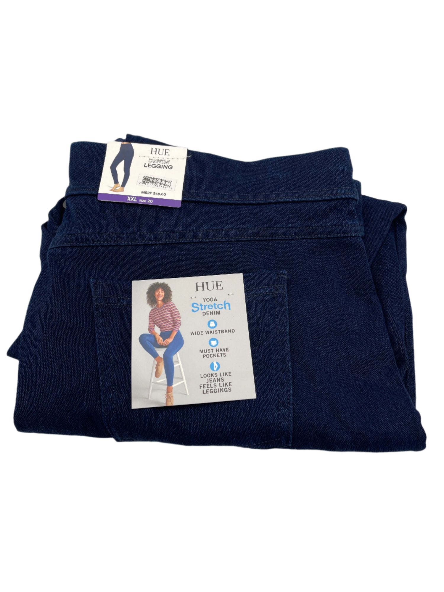 Experience the ultimate combination of style and comfort with Hue Yoga Stretch Denim Women's Leggings. Featuring a wide waistband and must-have pockets, these leggings offer the perfect fit for all your yoga sessions. With the look of jeans and the feel of leggings, they are a must-have for any fashion-forward and active woman.